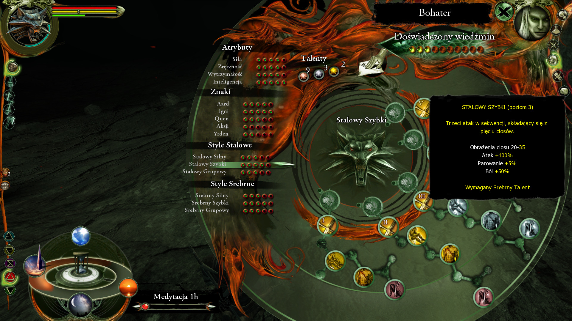 Where the game really shines are the role-playing aspects. We have 3 sword fighting styles, suited for different enemies and situations. Geralt can’t do regular magic and “cast fireballs” - instead, he uses simplistic “signs”, which is a really unique way of framing a magic system.
